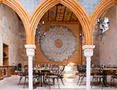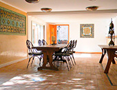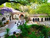 Pour un buffet à la belle saison, une animation conviviale, un repas de famille, la terrasse peut accueillir de grands groupes pour manger ou travailler en extérieur, et profiter du cadre naturel et architectural. Pour animation musicale, un orchestre trouvera naturellement sa place dans un espace dédié, près du cloître.